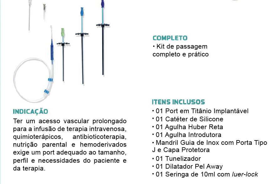 - Baixo perfil e cateter de alto fluxo.